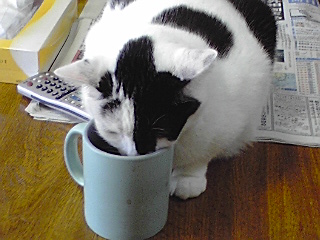コーヒーカップに顔突っ込んで匂いをかいでるそうで。